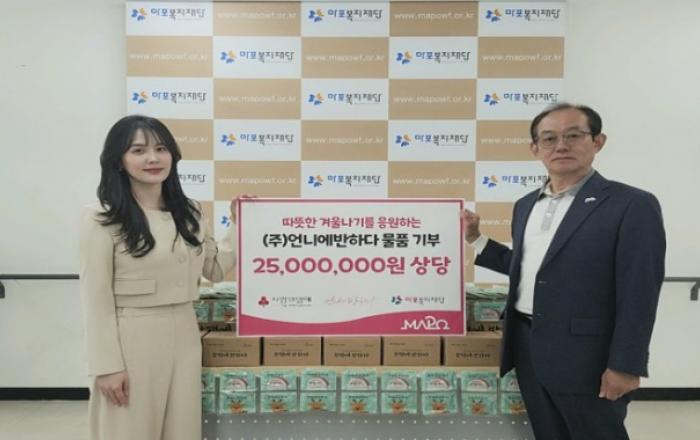 이에 마포복지재단 이홍주 이사장은 ”겨울철 추위로 인해 소외계층 아동들이 어려움을 많이 겪고 있는데, 해당 물품들은 아동들의 안전과 건강을 지키는 데 큰 도움이 된다. 나눔을 실천해주신 ’언니에반하다‘ 기업에 감사드린다“며 ”후원품은 도움이 꼭 필요한 아동들에게 투명하게 전달하겠다’고 말했다.