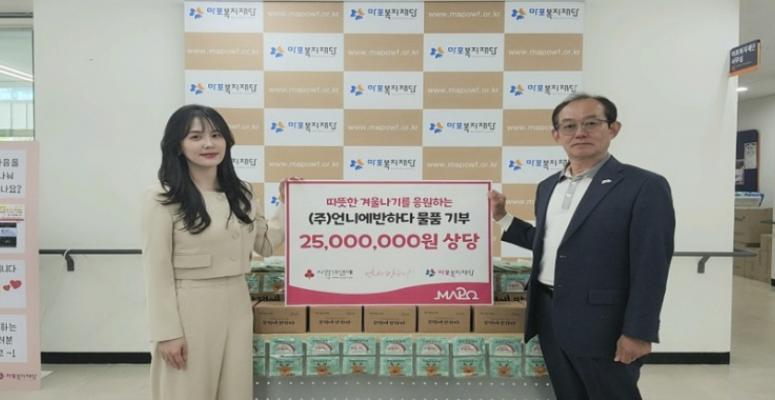 지난 10월 21일(화) ㈜언니에반하다(대표 이송이)는 마포복지재단(이사장 이홍주)에 마포구 저소득 주민을 위한 후원품(마스크, 핫팩)을 전달했다. ㈜언니에반하다는 2022년부터 마포구 저소득 주민들을 위해 자사 제품인 핸드워시, 온열안대, 핫팩, K...