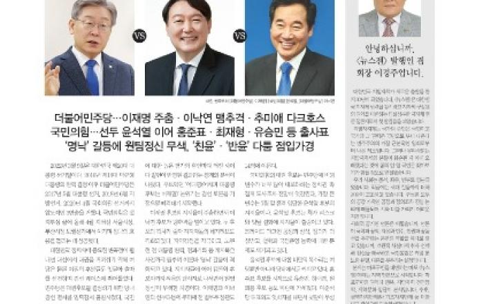 국민의힘 대선 경선 갈수록 치열(TV토론 열기 후끈, 11월 5일 결정)대권풍향계, '서울 민심에 달렸다'(여야 유력후보 지지율 업치락뒤치락)시총 100조 찍은 카카오 '급제동'(정부.국회.소상공인 전방위 압박)창업생태계 살리는 벤처투자 '봇물'(사상 최초 투자액 7조