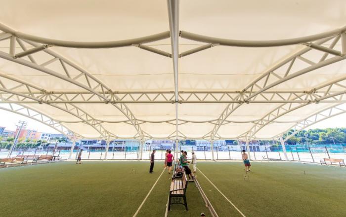 ▲ 체육공원에 설치된 그늘막마포구(구청장 유동균)가 노고산 체육공원(노고산동 25-1)의 정비를 완료하고 7월부