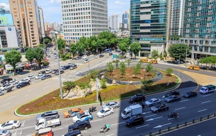 ▲ 공덕오거리 수경정원마포구(구청장 유동균)가 공덕오거리 노후된 교통섬 녹지(공덕동 438-5일대)를 정비, 계절과 시간의 변화를 느낄 수 있는 수경정원으로 탈바꿈했다고 22일 밝혔다. 서울 교통의 중심부에 위치한 공덕오거리 회전교차로 수경공간은 그동안 노후된 수경시설