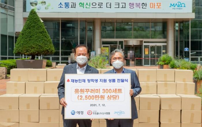 7월12일, 애경산업(주) 임재영 대표이사는 재능 인재 장학생 300명에게 지원할 학용품 등 꾸러미 300박스(2,500만원 상당)를 마포구청에 전달했다.이를 전달받은 마포구청장 유동균은 "최근 코로나19 확산으로 더욱 힘들어진 취약 계층의 지원을 위해 기탁해 주신 애