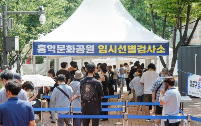 7월 13일 마포구(구청장 유동균)가 4차 대유행이 우려되는 코로나 19 확산세를 차단하기 위해 임시 선별 검사소를 추가 설치하였다. 마포구는 유동 인구가 많은 홍익대학교 앞 ‘홍익문화공원’(와우산로 21길 19-3)에 12일부터 임시 선별 검사소를 설치해 운영하고