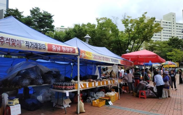 ▲2019년에 마포구청 광장에서 개최된 추석맞이 직거래 장터 모습마포구는 추석을 맞아 9월 1일부터 이틀간 구청 광장에서 오전 10시에 오후 6시까지 ‘추석맞이 농·특산물 직거래 장터 및 바자회’를 운영한다.마포구는 코로나19 확산 방지를 위해 2020년 추석부터 명절