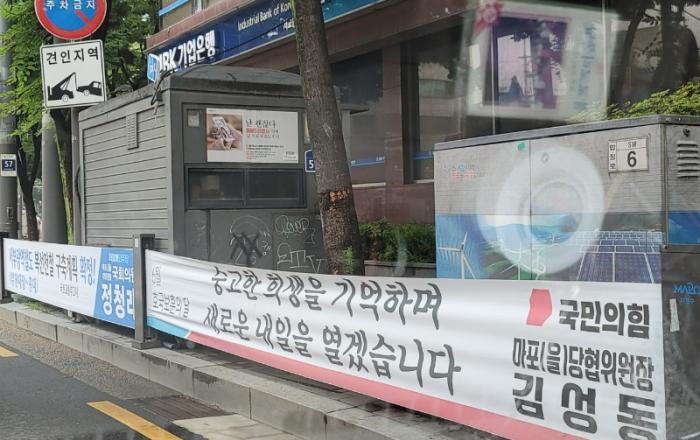 여러 차례에 걸쳐 불법 현수막을 관리할 것을 마포구 도시안전과에 요청을 하고, 신문고에 올렸는데도 불구하고 아직도 불법 현수막이 관리가 되지 않고 있다.▲ 마포대교 · 강북도로 부근에서 공덕동으로 진입하는 곳이다.▲ 망원역 2번출구 부근에 설치된 불법 현수막 사진뉴스젠