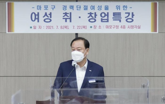 ▲ 유동균 마포구청장 [사진 = 마포구청 제공]마포구청이 진행한 취·창업에 관심 있는 경력단절 여성을 위한 특강이 열려 관계자들의 관심을 끌고있다.작년부터 시작된 코로나 19 장기화로 인해 고용 시장이 위축되고 취업난이 심화되는 것이 계기가 된 본 특강은 혼인·임신·출