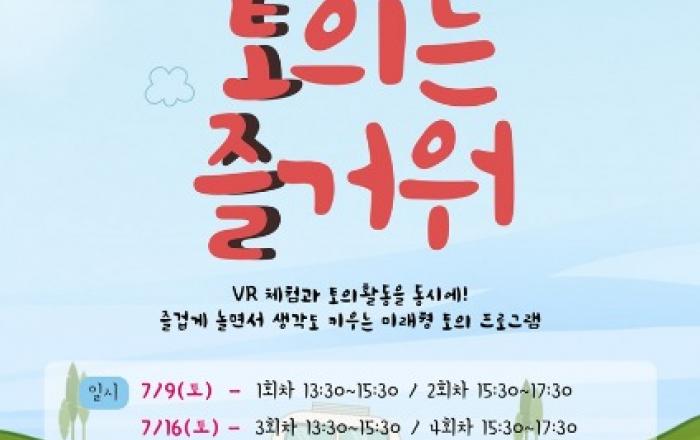 마포중앙도서관에서 VR체험과 토의활동을 동시에 즐길 수 있는 색다른 문화프로그램이 열린다.마포구는 오는 7월 초등학생을 대상으로 VR체험과 토의 활동을 결합한 ‘토요일! 토의는 즐거워’(이하 토토즐) 프로그램을 운영한다고 29일 밝혔다.이번 프로그램은 중앙도서관 디지털