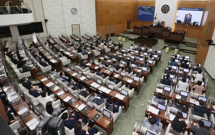 ▲4일 서울 중구 서울시의회에서 제309회 임시회 본회의가 열리고 있다.□ 서울특별시의회는 2022년 7월 4일(월) 제309회 임시회를 개최하여 의장과 부의장을 선출했다. 제11대 서울특별시의회 전반기 의장에는 국민의힘 김현기 의원(강남3)이, 부의장에는 국민의힘 남