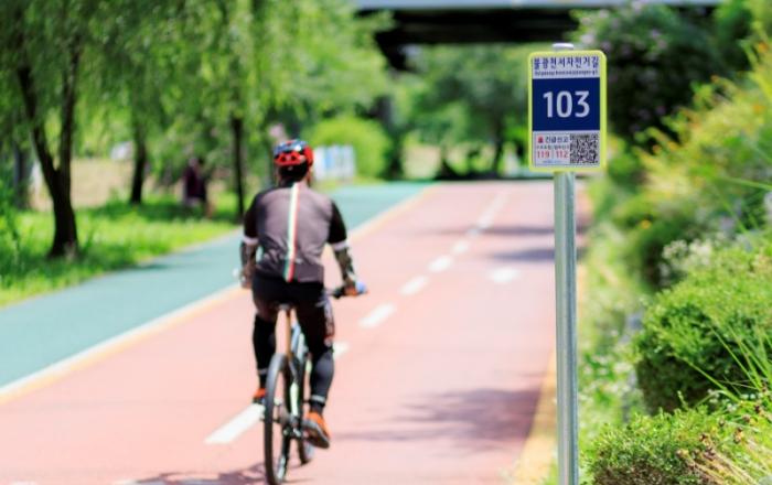 마포구는 사고 시 구조요청을 할 수 있는 ‘SOS원스톱시스템’이 탑재된 도로명주소 형식의 기초번호판을 홍제천, 불광천 일대 자전거길에 설치했다고 21일 밝혔다.최근 출퇴근과 취미활동을 위해 자전거 이용 인구가 늘어나면서 자전거 사고도 증가세를 보이고 있지만, 사고 시