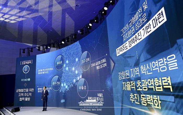 정부가 부산·울산·경남 초광역권 발전계획을 지역주도 선도사례로 신속하게 추진하기로 했다.또 범정부 차원의 지원을 위해 범정부 초광역 지원협의회 소속으로 강소권 특화발전 지원T/F를 설치할 계획이다.▲ 김사열 국가균형발전위원장이 지난 10월 14일 세종시 정부세종컨벤션센