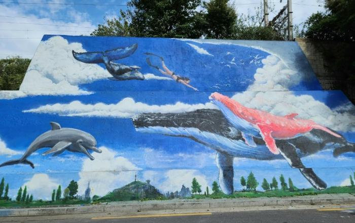‘연트럴파크’로 불리며 서울의 대표 명소로 자리 잡은 마포구 연남동의 경의선 숲길공원에 희망을 담은 ‘하늘고래’가 떠올랐다. 서울 마포구(구청장 유동균)가 연트럴파크 초입길(성미산로23길 78) 재생사업으로 기존의 노후화된 벽화를 재도색해 ‘하늘고래’ 벽