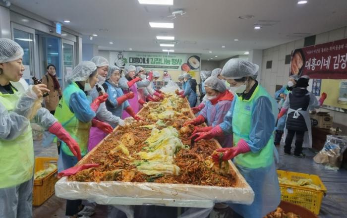 5년전부터 대흥동주민자치위원회 프로그램의 일환으로 매년 김장 김치를 담아 취약계층에서 나누어주는 행사를 했었다.올해는 프로그램이 폐기되어 김장 김치를 기다리는 취약계층에서 줄 수가 없어 안타까운 일이 생겼다.이를 알고 한울타리봉사단을 비롯하여 여러 자치단체에서 기금을