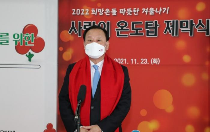 마포구(구청장 유동균)가 지난 23일 마포구청 1층 로비에서 ‘2022 따뜻한 겨울나기 사업’ 홍보를 위한 ‘사랑의 온도탑 제막식’을 개최했다. 제막식에는 유동균 마포구청장을 비롯해 김진곤 서울사회복지공동모금회 사무처장, 정청래 마포을 국회의원, 조영덕 마포