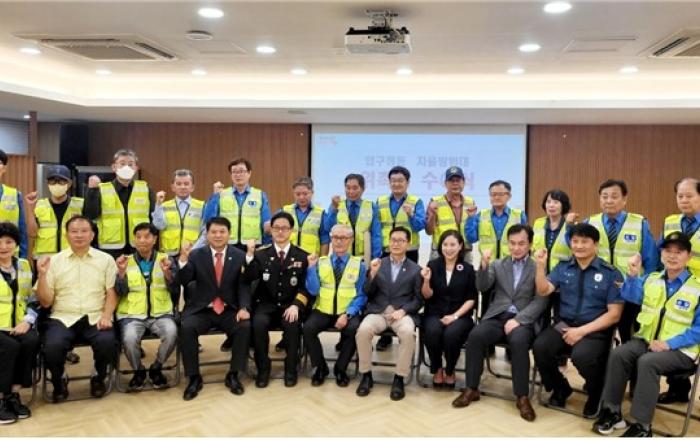 서울특별시의회 교육위원회 이새날 의원(국민의힘, 강남1,앞열 오른쪽에서 4번째)은 지난 11일 압구정동 주민센터에서 열린 ‘23년 압구정동 자율방범대 위촉장 수여식’에 참석해 방범대 공식 설립을 축하하고 격려했다.지역주민의 자발적인 참여로 범죄 예방활동을 펼치던 주민자