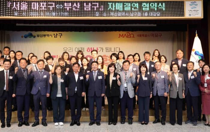 마포구(구청장 박강수)가 부산 남구와 상호협력 및 상생발전을 위한 자매결연을 맺었다.결연을 통해 경제‧관광‧문화‧교육‧체육 등 지역의 다양한 분야에 대한 교류와 상생 발전을 모색하자는 취지로, 18일 부산 남구청에서 자매결연 협약식을 진행했다.이를 통해 양 기관은 서로
