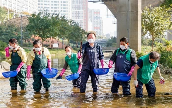 이날 행사에는 박정환 새마을지회장, 김종덕 새마을지도자협의회장, 김설란 새마을부녀회장, 이순선 새마을직‧공장회장, 전현경 새마을문고회장 등 새마을 회원 40여 명이 참여했다.홍제천 정화 활동은 하천 변 제초 작업, 하천 생활쓰레기 수거, EM 흙공을 던지기와 ‘나무 5