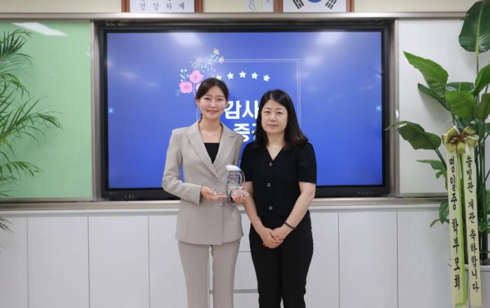 서울특별시의회 김혜지 의원(강동구 제1선거구, 국민의힘, 사진 왼쪽)은 지난 6월 29일(목)에 열린 명일중학교 솔빛관 개관식에 참석해 학교 현장을 둘러보고, 축하의 인사를 전달했다고 밝혔다. 솔빛관은 학생식당과 6개의 특별 교실로 이루어진 건물로, 학생들이 늘 푸른