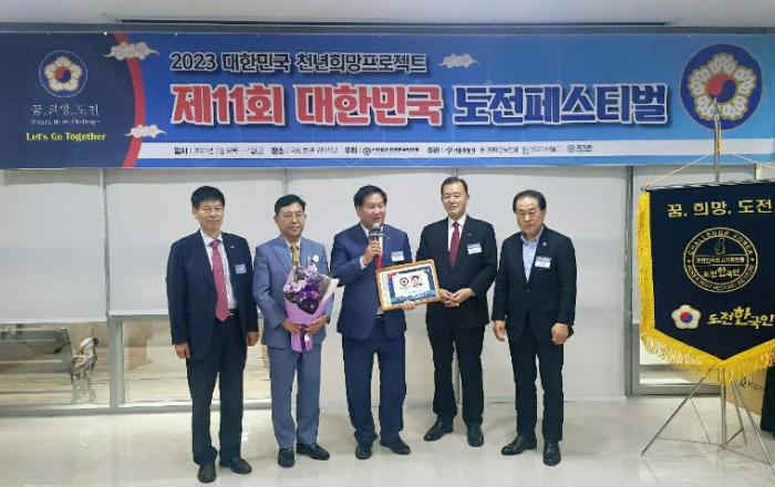 서울시의회 도시계획균형위원회 박영한 의원(국민의힘, 중구1,사진 가운데)은 지난 6일 국회의사당 본관에서 개최된 ‘제11회 대한민국 도전페스티벌’에서 도전한국인상을 수상했다.대한민국 도전페스티벌은 (사)도전한국인본부가 주관하고 서울시, (사)대한노인회, 코리아헤럴드,