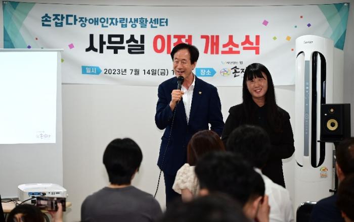 남창진부의장이 지난 14일 국내 최초 시각장애인 특화 자립센터인 ‘손잡다장애인자립생활센터’(이하 손잡다센터) 개소식에 참석했다.이날 개소식에는 국민의 힘 김예지국회의원, 서울시의회 남창진 부의장, 동작구의회 장순욱 구의원을 비롯한 관계자 및 시청각장애인 등 100여명이