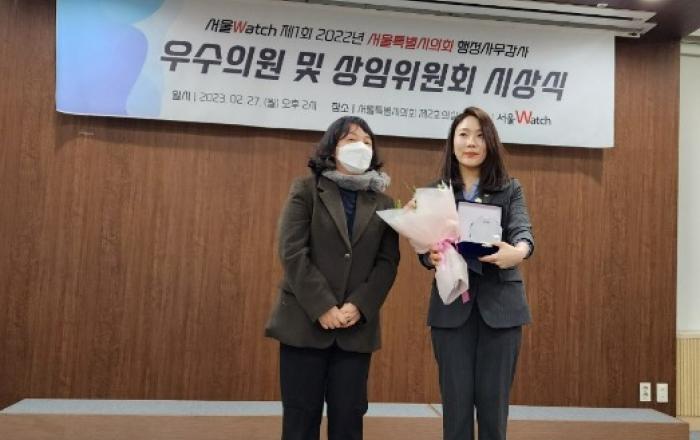 □ 서울특별시의회 채수지 의원(양천구 제1선거구, 국민의힘, 사진 오른쪽)은 27일 오후 2시, 서울특별시의회 제2회의실에서 열린 ‘제1회 2022 서울특별시의회 행정사무감사 우수의원 및 상임위원회 시상식’에서 우수의원으로 선정되었다.□ ‘서울Watch’*가 주최한 이
