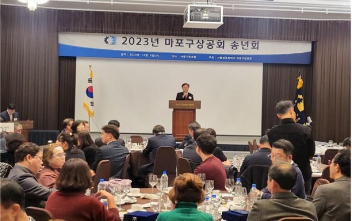 ▲ 2023마포구 상공회 송년회에서 축사를 하고 있는 이재흥 회장서울상공회의소 마포구상공회(회장 이재흥)는 12월06일(수) 17시부터 서울가든 호텔 2층 그랜드볼룸에서 ‘2023년 송년회 및 제18기 CEO 아카데미 연구과정 수료식’을 진행했다고 밝혔다. 이날 행사는