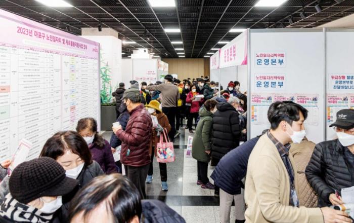 마포구(구청장 박강수)는 오는 13일 마포구청 1층 어울림마당에서 어르신들의 건강하고 활기찬 노후생활과 안정적인 소득 보전을 위한 ‘2024년 마포구 노인 일자리 박람회’를 개최한다.▲ 지난해 열린 마포구 노인 일자리 박람회에 많은 어르신들이 참석해 인산인해를 이뤘다.
