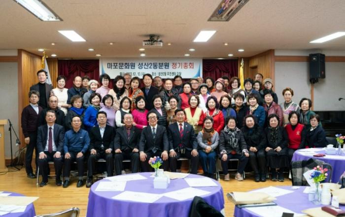 마포문화원 성산2동분원(분원장 이성용, 명예분원장 김기덕)2023년 정기총회 겸 송년회를 지난 12월13일 17시 성산2동 주민센터 강당에서 이사(대의원) 65명이 참석한 가운데 1부-총회, 2부-송년음악회(서울시향 앙상블 오케스트라) 3부-송년만찬 순으로 3시간여 개