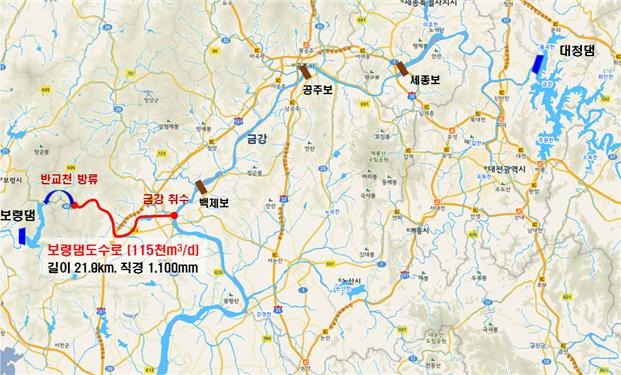 환경부와 한국수자원공사는 다목적댐인 보령댐이 가뭄 '경계' 단계에 진입함에 따라 생활·공업용수를 안정적으로 공급하기 위해 하루에 최대 11만 5천 톤의 금강 하천수를 보령댐에 보충할 수 있는 도수로를 8월 16일 오후부터 가동했다고 밝혔다.