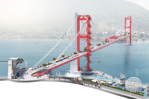 한국종합기술은 '보물섬 남해문 열다'라는 슬로건으로 ▲노량마을 활성화 ▲ 주탑 상부를 오르내리는 전국 유일의 경험을 제공할 남해대교 제1주탑 전망대와 액티비티 ▲ 주탑 하부 캡슐바이크 및 해상카페, 경관폭포 ▲ 교량 상부의 공원화 및 오토셔틀 운행 ▲ 노량항 워터프론트 조성 ▲ 짚라인 등을 제안했다.