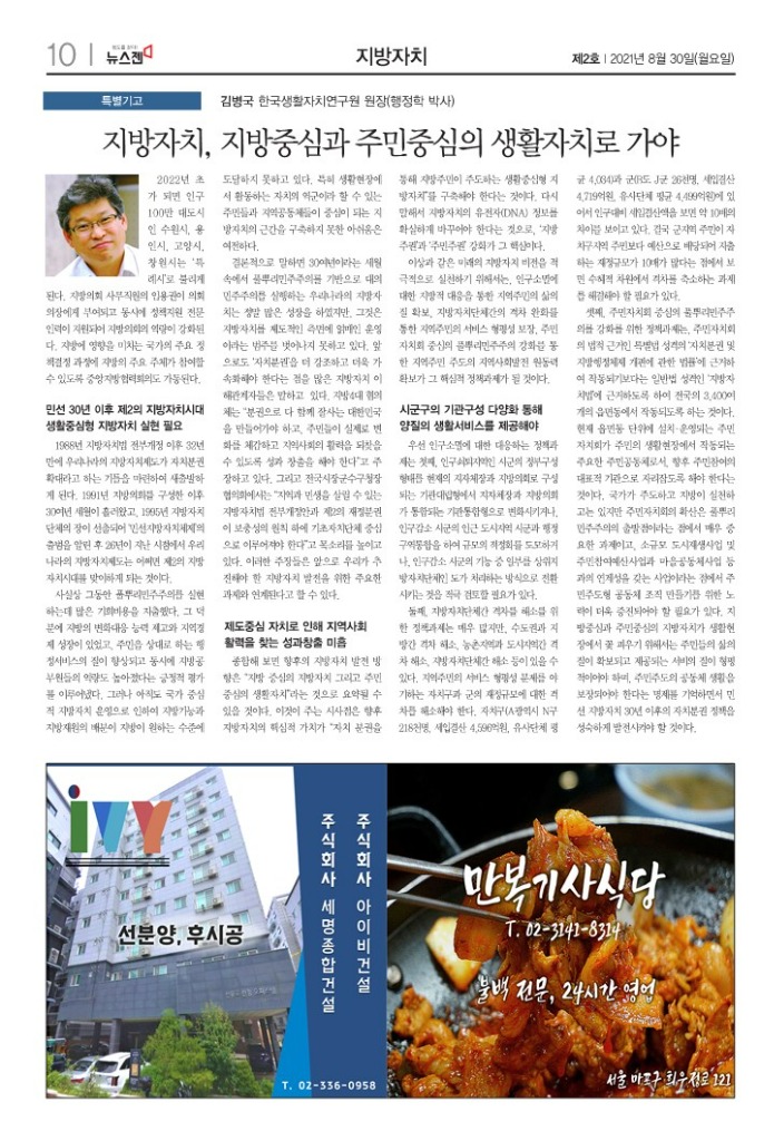 ▲지방자치, 지방⦁주민중심의 생활자치로 가야