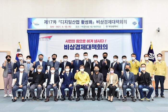 부산시는 디지털 대전환을 위한 대책으로 지난 8월에 발표한 ‘데이터 산업 육성방안’에 이어 두 번째 전략인 ‘디지털산업(디지털 전환산업 + 기존 ICT융합산업) 활성화 방안’을 주제로 오늘(16일) 제17차 「비상경제대책회의」를 개최하고 연구기관, 기업체, 교수 등 전문가와 함께 머리를 맞댔다.