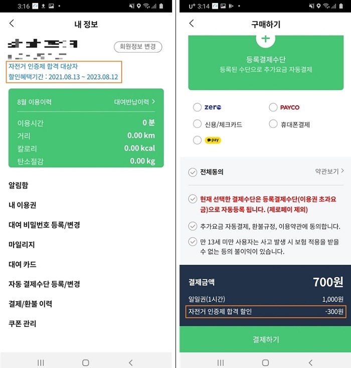 인증 유효기간 및 요금감면 기간은 인증일로부터 2년으로, 합격자는 따릉이앱 회원가입 후 앱에서 일일권 또는 정기권 구매 시 자동적으로 할인 적용된다. (6,7월 인증제 합격자의 경우 8월부터 감면 소급적용)