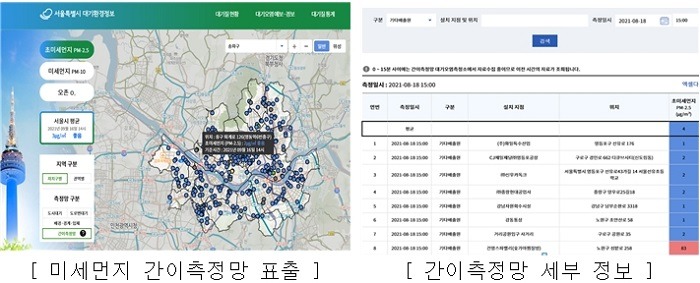한편, 서울시는 그간 축적된 미세먼지 농도 및 간이측정망 측정자료의 빅데이터 분석 등을 통해 시민들이 야외 활동을 하거나 이동할 때 미세먼지 노출을 최소화할 수 있는 길안내 서비스도 향후 제공할 계획이라고 밝혔다.