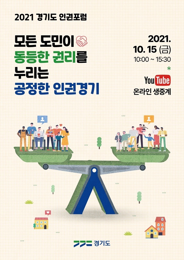 경기도는 오는 15일 ‘모든 도민이 동등한 권리를 누리는 공정한 인권경기’를 주제로 ‘2021 경기도 인권포럼’을 개최한다고 13일 밝혔다.