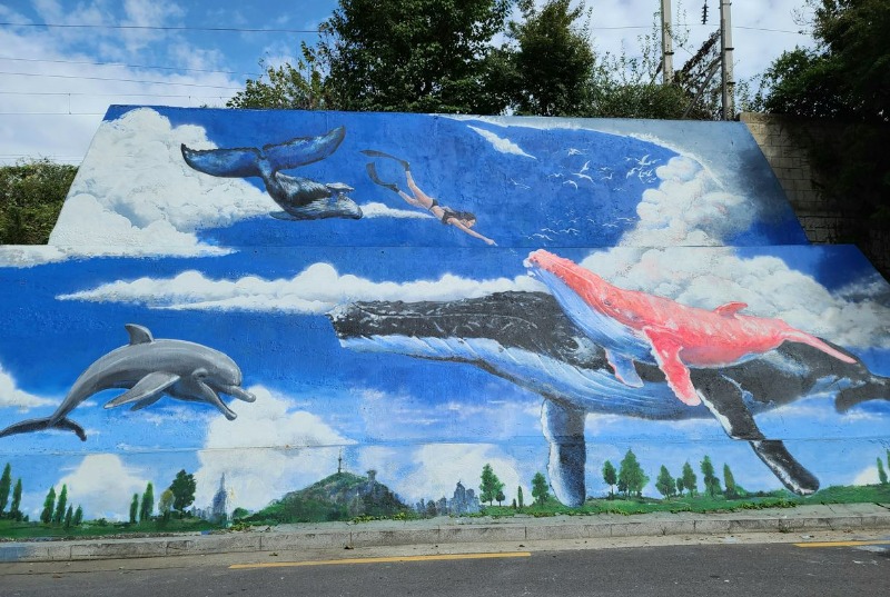 기존의 노후화된 벽화 재도색…도약과 희망메시지 담은 ‘하늘고래’로
