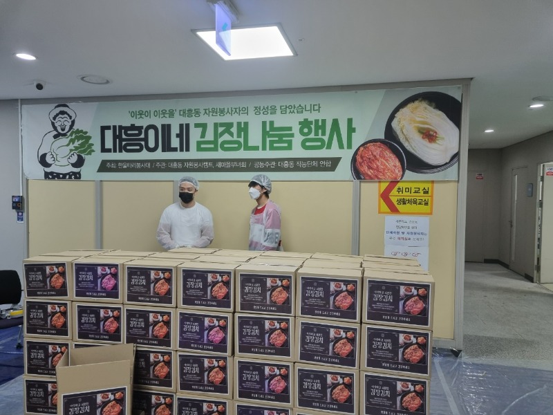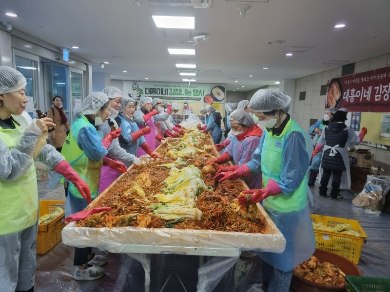 2021년 11월 12일 대흥동 주민자치센터 지하 1층에서 총 400포기의 김치를 담았다.