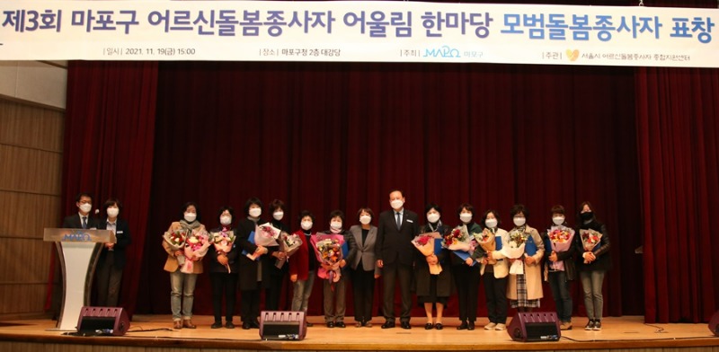 지난 19일 오후 3시 마포구청 대강당에서 어르신돌봄종사자 11명에게 표창