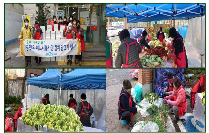 공덕동주민센터(동장 신권식)에서는 공덕동 며느리봉사단(회장 임동희)과 함께 홀몸어르신들을 위해 11월 23일(화) 9시부터 14시까지 주민센터 앞 마당에서 김장김치 담그기 행사를 개최했다.