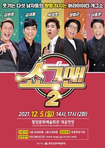 함양군문화예술회관은 웃기는 다섯 남자들의 빵빵 터지는 버라이어티 개그쇼 '쇼그맨 2' 공연을 오는 12월 5일 오후 2시와 5시 두 차례 걸쳐 함양문화예술회관 대공연장에서 선보인다.