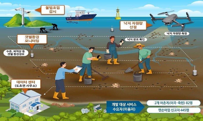 과학기술정보통신부(이하 ‘과기정통부’)와 전라남도 신안군, 한국지능정보사회진흥원(이하 ‘NIA’)은 올해 스마트빌리지 사업으로 추진된 신안군(도초면) ‘갯벌어장 스마트 낙지 조업지원 및 자원관리 서비스’의 성과보고회(12.13)를 개최하고, 현장 시연 등 구축내용을 최종 점검하였다.