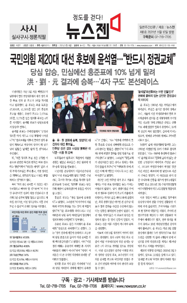 -국민의힘 대선후보에 윤석열 "반드시 정권교체"