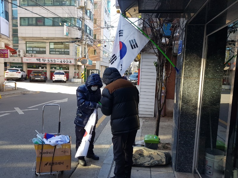 사단법인 태극기 무궁화 사랑회 31일 새해맞이 서울시 마포구 일대 태극기 교체 봉사활동 펼쳐