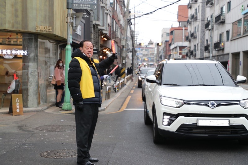 유동균 마포구청장, 망원1-2 공영주차장 교통정리 봉사에 나서