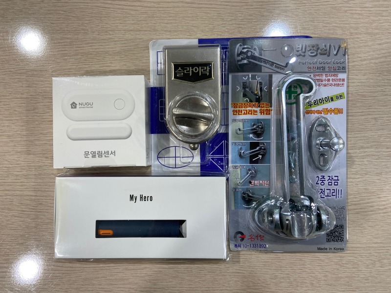 ‘안심홈세트’는 비상벨을 당기면 경보음과 함께 마포경찰서에 신고가 접수되는 ‘휴대용 비상벨’, 문 열림이 감지되면 문자를 통해 알림이 가는 ‘문열림센서’, 외부에서 창문 여는 것을 막아주는 ‘창문잠금장치’, 현관문 안전 고리인 ‘이중잠금장치’로 구성돼 있다.