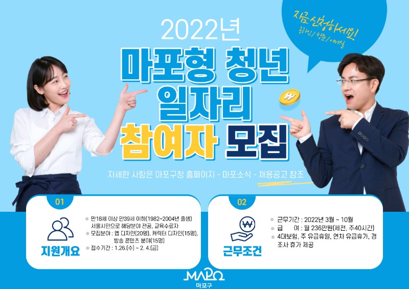 마포구, 2022년 마포형 청년일자리사업 참여자 모집