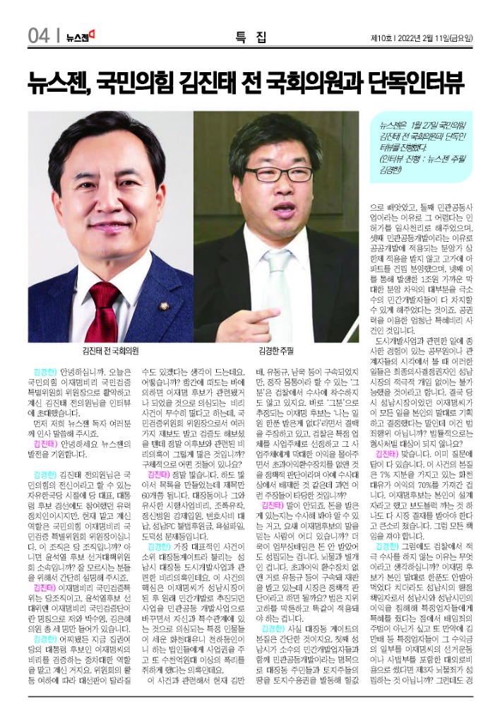 -뉴스젠, 국민의힘 김진태 전 국회의원과 단독인터뷰