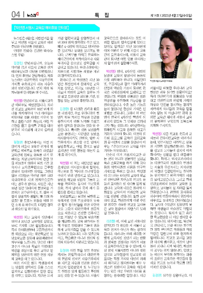 【 박선영 제8회 지방선거 서울시 교육감 선거 예비후보 인터뷰 】