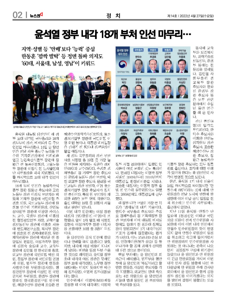윤석열 정부 내각 18개 부처 인선 마무리…