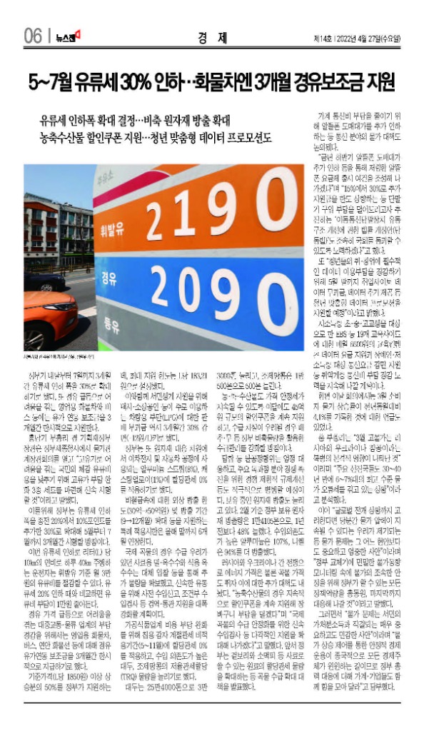5∼7월 유류세 30% 인하…화물차엔 3개월 경유보조금 지원