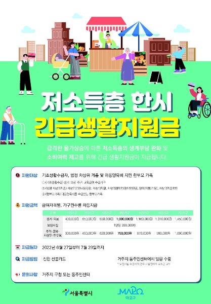 마포구(구청장 유동균)는 코로나19 이후 경기 침체와 급격한 물가 상승으로 인해 어려움을 겪고 있는 저소득층을 대상으로 지난 27일부터 긴급생활지원금 지급에 돌입했다고 밝혔다.